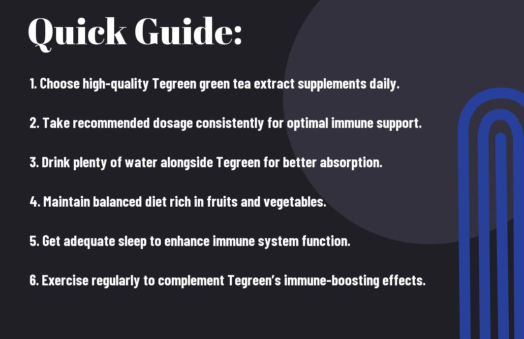 Over the years, maintaining a strong immune system has become important for your overall health and well-being. By incorporating Tegreen, a powerful green tea extract, into your daily routine, you can enhance your body's defenses against various ailments. In this guide, you'll discover 10 actionable steps to optimize your immune response through the remarkable benefits of Tegreen. From nutritional advice to lifestyle changes, you will learn how to leverage the potency of green tea to bolster your health and vitality.
