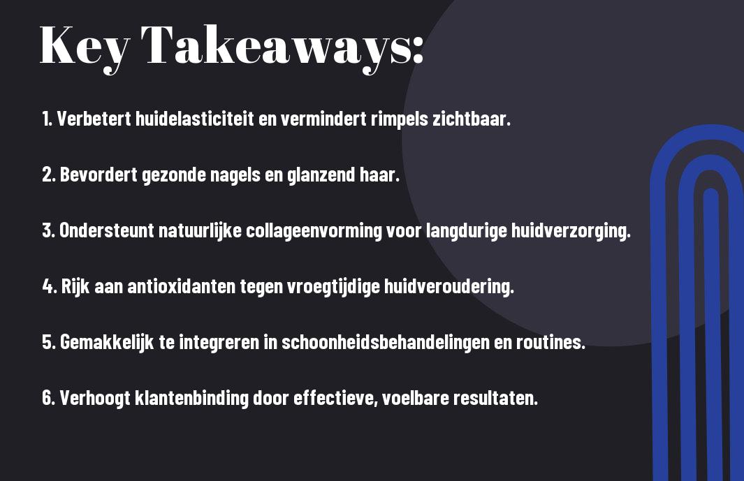 Daarnaast hebben diverse schoonheidsprofessionals de effectiviteit van Beauty Focus Collagen+ gemeten door middel van voor- en na-foto's en klantbeoordelingen. Deze data tonen aan dat na een kuur met Collagen+, 85% van de klanten een verbetering in huidstructuur en een gezonde gloed rapporteren. Dit soort meetbare resultaten maken het voor u als schoonheidsexpert niet alleen makkelijker om klanten te overtuigen, maar ook om een stevige reputatie op te bouwen in de concurrentiële wereld van schoonheid.