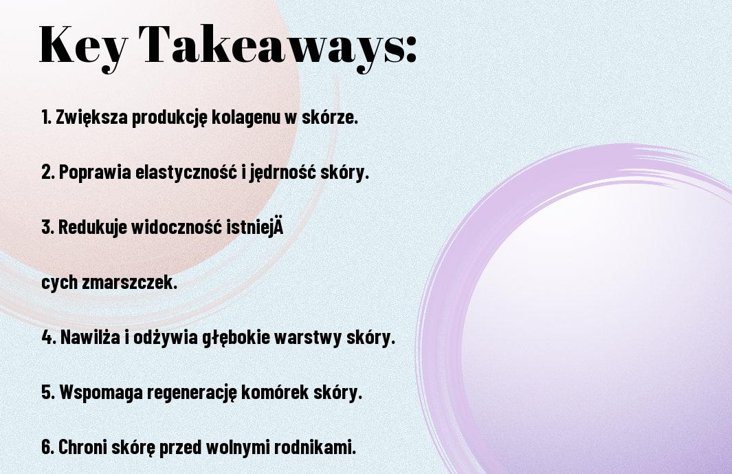 Kolagen jest kluczowym składnikiem w procesach regeneracyjnych skóry. Jego obecność wspomaga odbudowę tkanek, a także stymuluje produkcję nowych komórek. Dzięki temu skóra zyskuje na gęstości, co wpływa na redukcję zmarszczek. Z doświadczenia wiem, że uzupełniając dietę o kolagen, można zauważyć znaczną poprawę stanu cery, co potwierdzają liczne badania.